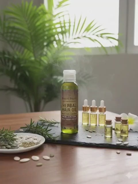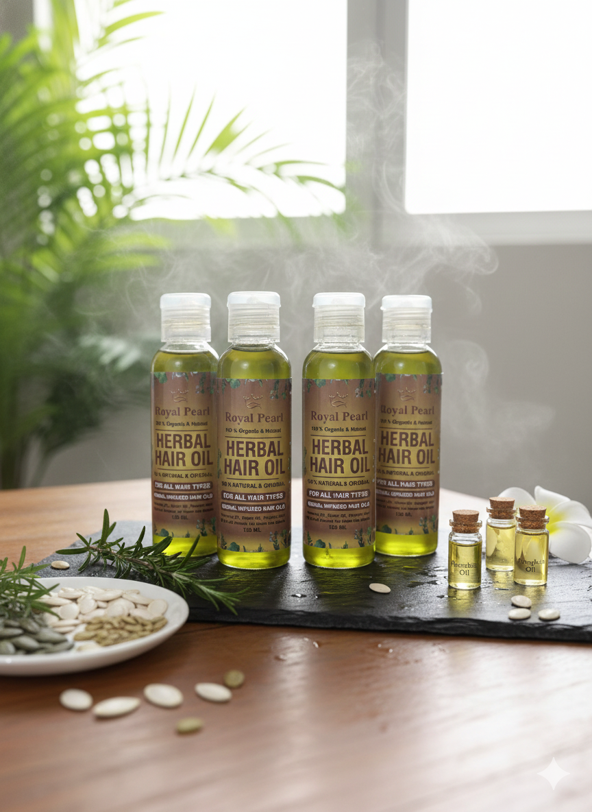 Royal Pearl Herbal Hair Oil delivers a powerful blend of pure herbs to reduce hair fall, boost growth, and nourish your roots. Its natural, chemical-free formula restores shine, fights dandruff, and brings dull hair back to life giving you stronger, healthier, more beautiful hair naturally.